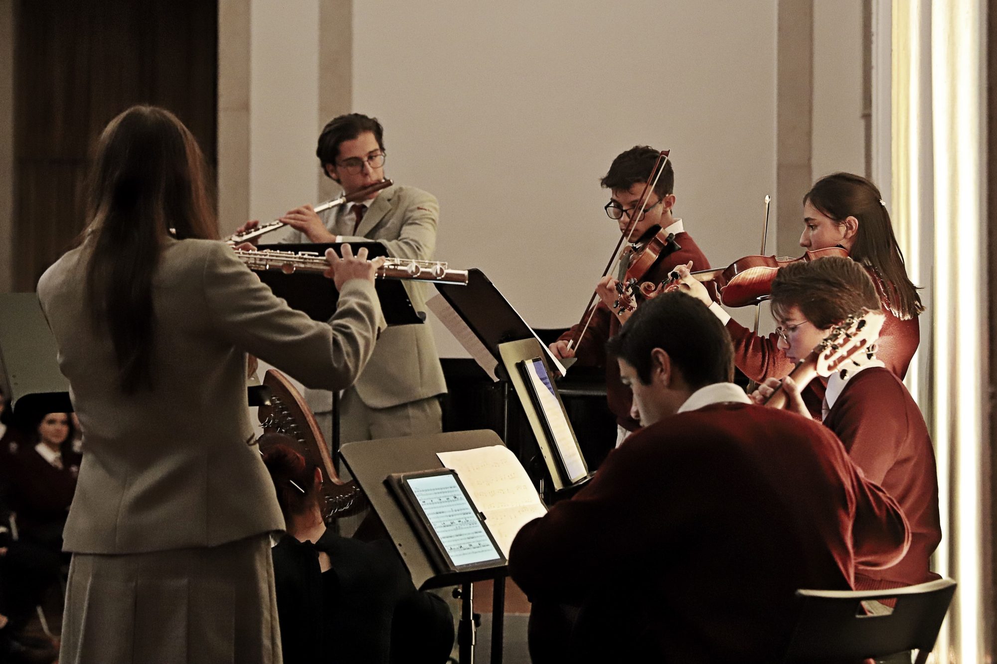 O programa musical da noite integrou atuações de professores e alunos, com obras de Mangani, Elgar, Pachelbel, Beischer-Matyó, Purcell e Couperin. Entre os momentos mais aplaudidos esteve o regresso de Laura Guedes, antiga aluna de flauta transversal, atualmente distinguida em diversos concursos nacionais e internacionais, que interpretou “Fantaisie”, de Philippe Gaubert.