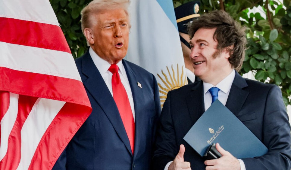 Javier Milei, o Presidente da Argentina e o seu staff foram recebidos na Casa Branca, onde foi falar com o seu amigo e salvador Trump, que o tem apoiado  financeiramente no último ano, dado que as politicas de cortes em pessoal na administração pública, que ele indiscriminadamente executou, não estavam a surtir o efeito  por ele desejado e esperado na economia, provocando, em oposição,  uma crise financeira grave e a consequente necessidade urgente de financiamento de 20K, tendo na sequência desse grande desaire , levado o povo insatisfeito a castigar o seu partido, numas eleições que perderam, não conseguisse o financiamento externo, algo que conseguiu recorrendo a Trump, o que evitou que recorresse ao FMI, e às draconianas medidas que este exige como condição para o empréstimo pretendido.