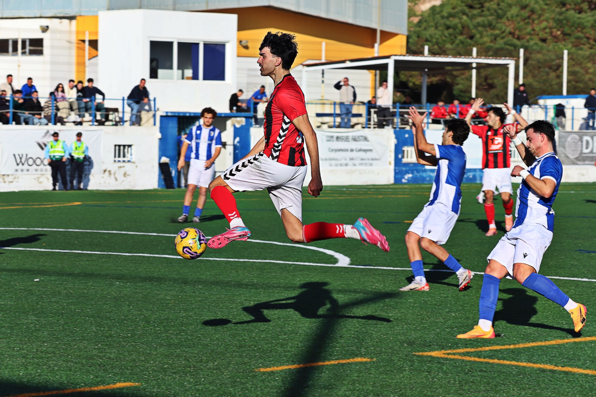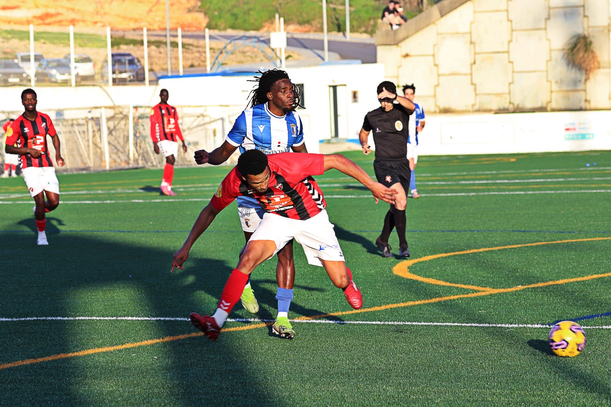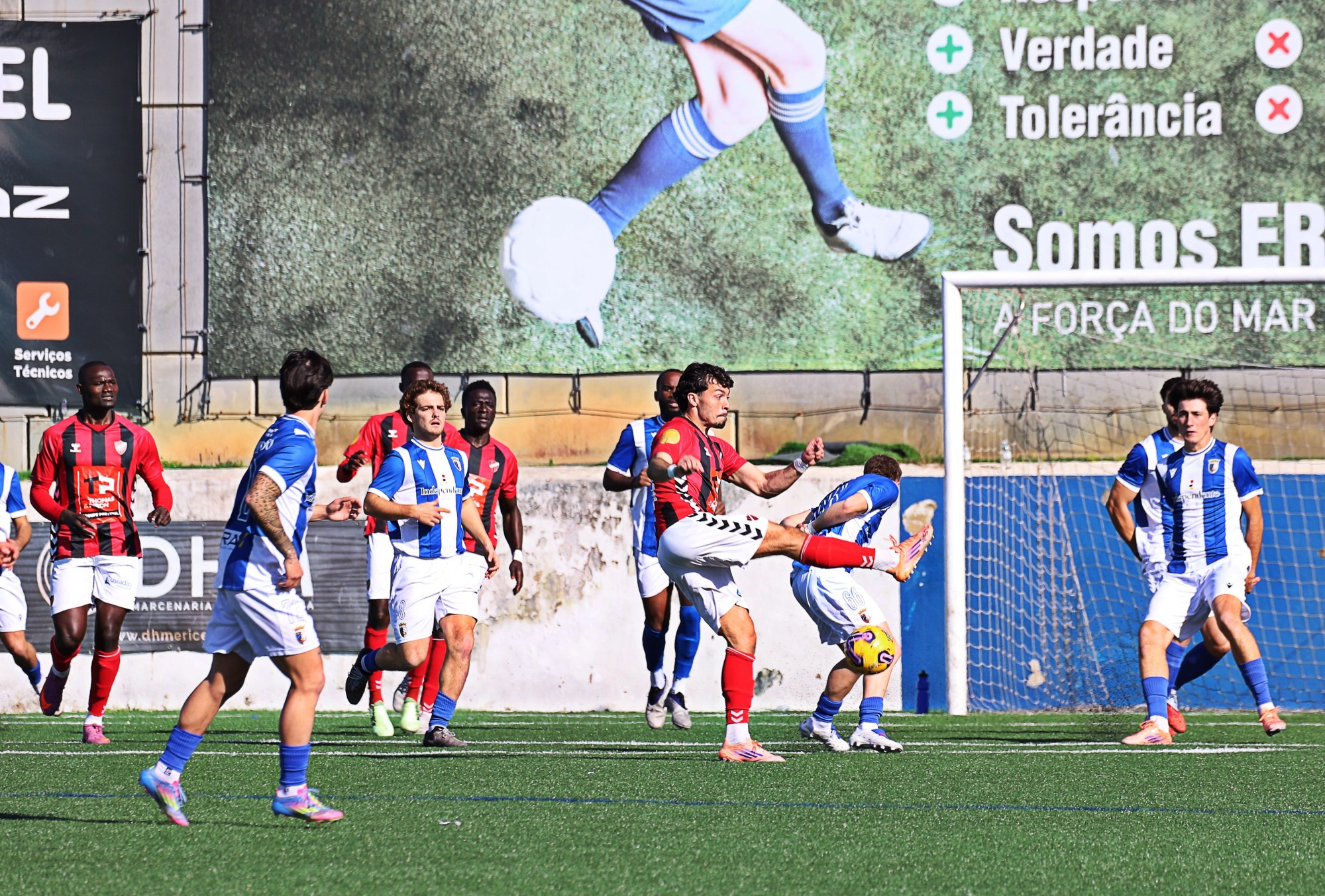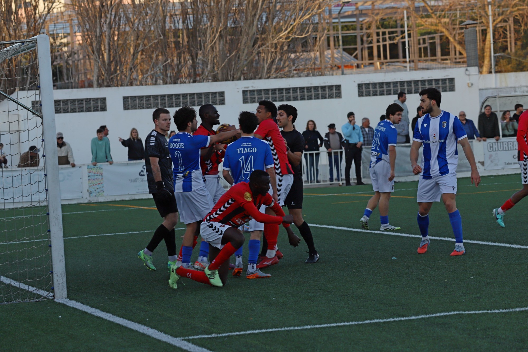 A segunda parte trouxe outro cenário: mais disputa física, menos espaço e muitos nervos. O jogo tornou-se mais tático e combativo, até que o espetáculo se descontrolou após a expulsão de um jogador do Sacavenense.