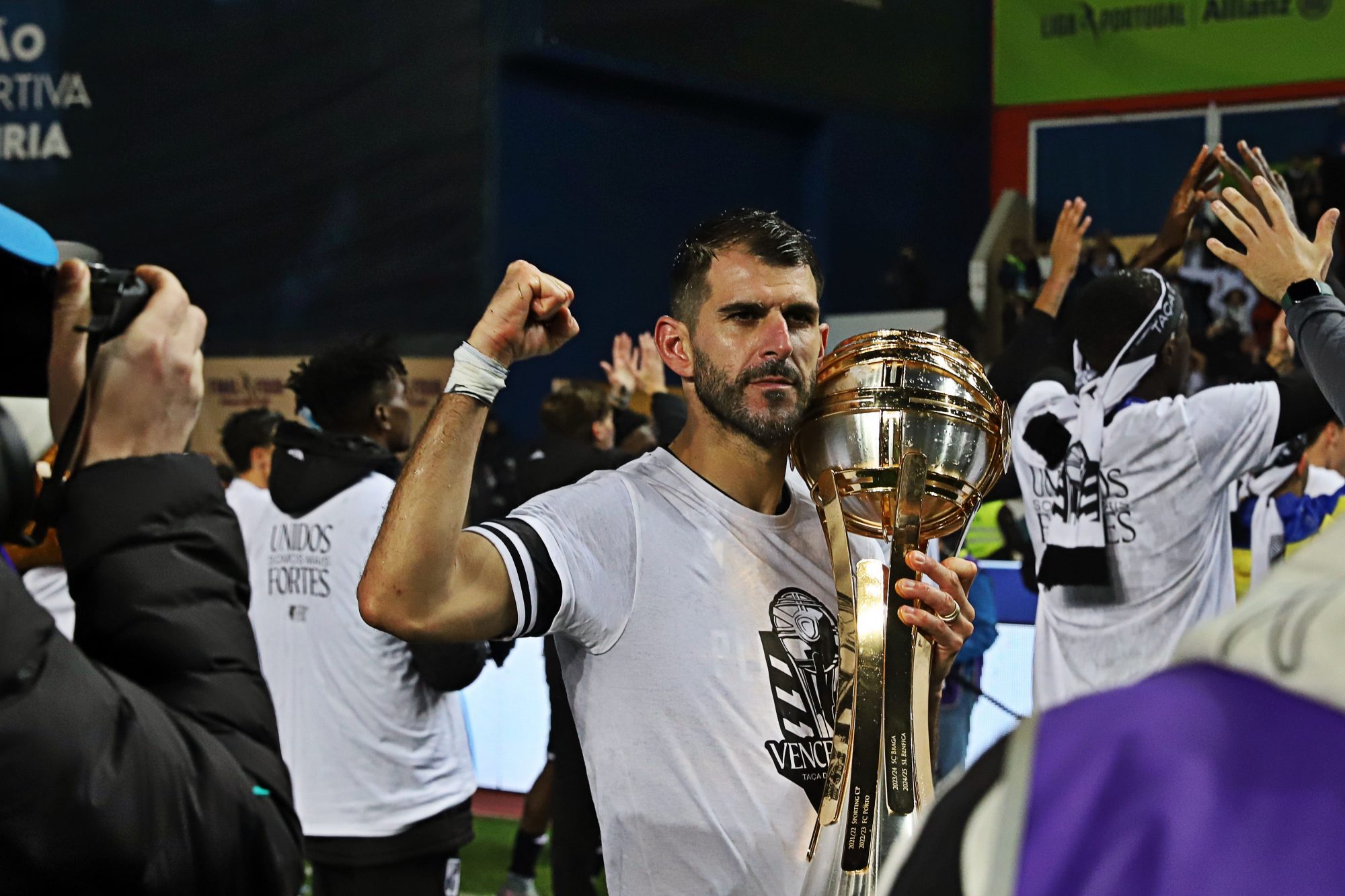 Depois foi a festa do título do Vitória que celebrou efusivamente esta primeira conquista da Taça da. Liga com os seus adeptos.