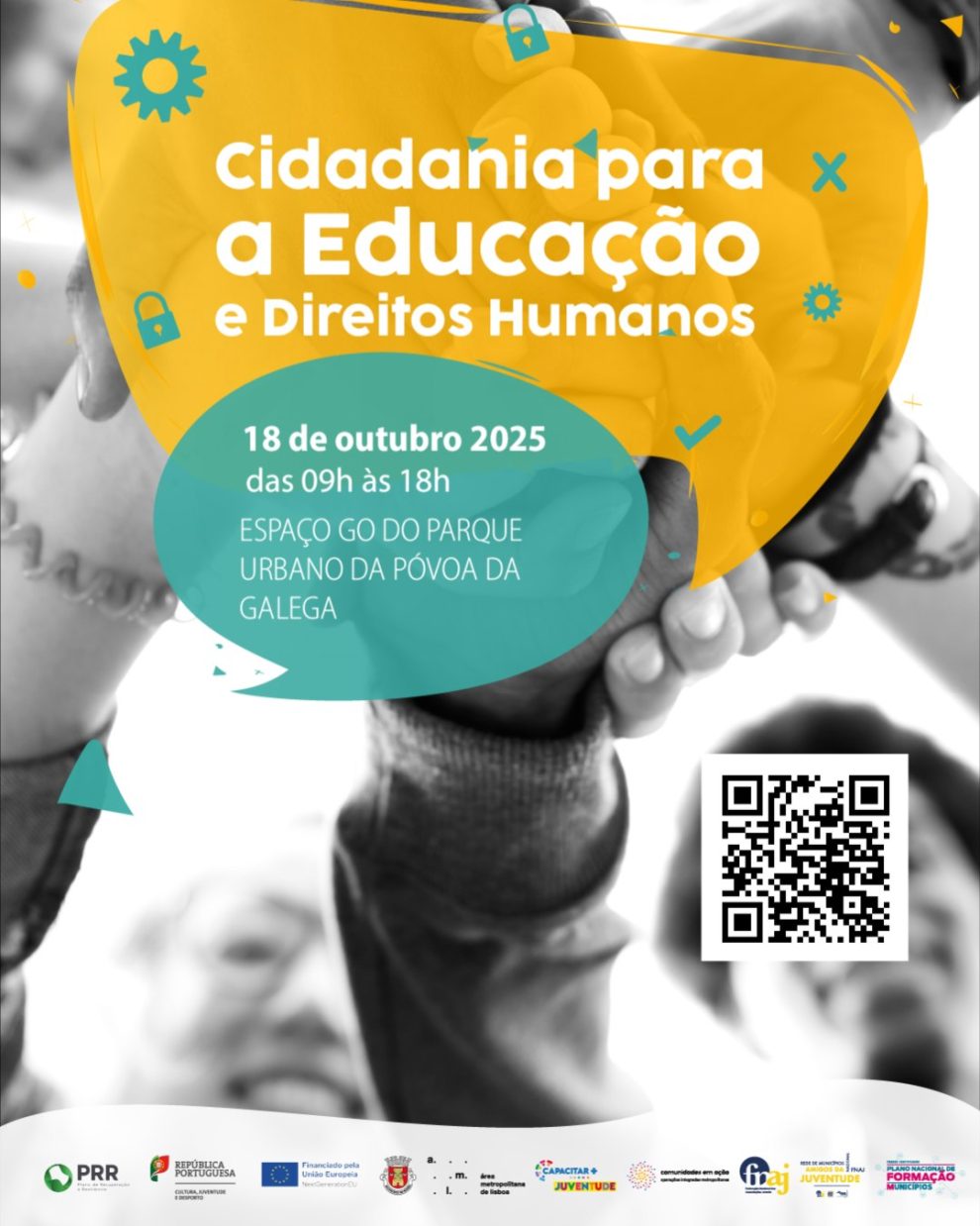 Gostavas de saber mais sobre o funcionamento da democracia? Direitos humanos e justiça social são temas que te deixam curioso/a? Participa na ação de formação gratuita e certificada “Cidadania para a Educação e Direitos Humanos”, no dia 18 de outubro, entre as 09h00 e as 18h00, no GO #OTEUESPAÇO do Parque Urbano da Póvoa da Galega.