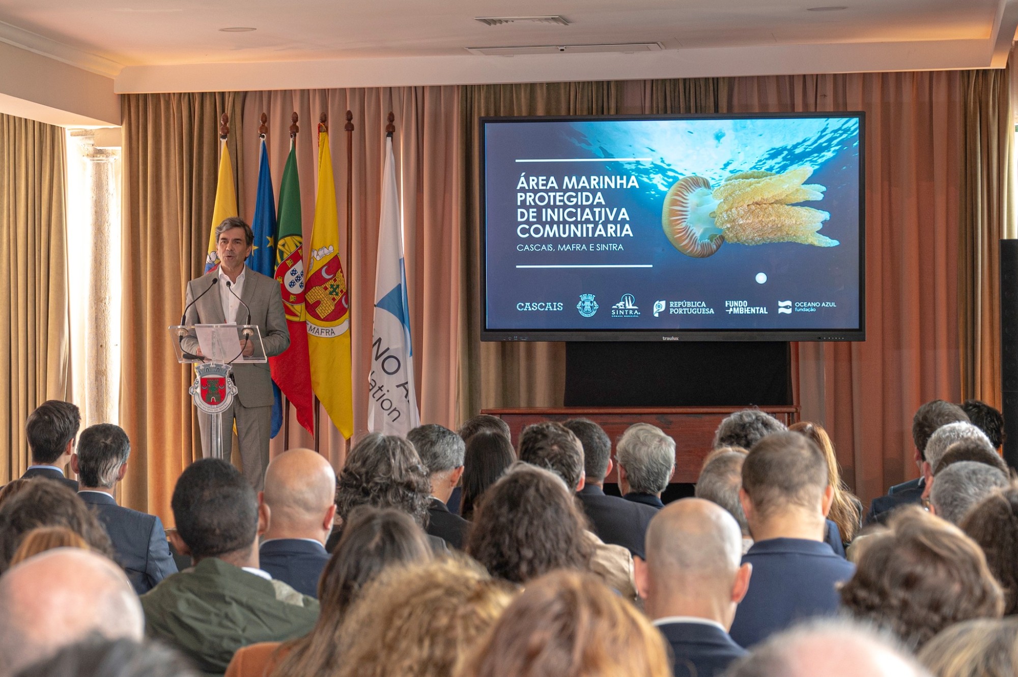 O evento que decorreu na Ericeira, em Mafra, contou com a presença da senhora ministra do Ambiente e Energia, Maria da Graça Carvalho, bem como dos senhores presidentes de Câmara de Mafra, Hugo Luís, da Câmara de Sintra, Marco Almeida, e o vice-presidente da Câmara de Cascais, Luís Capão. O evento contou também com representantes de entidades como a Secretaria de Estado do Mar e das Pescas, a DGRM, o ICNF, o IPMA que reforçam o compromisso institucional conjunto com a criação desta Área Marinha Protegida.