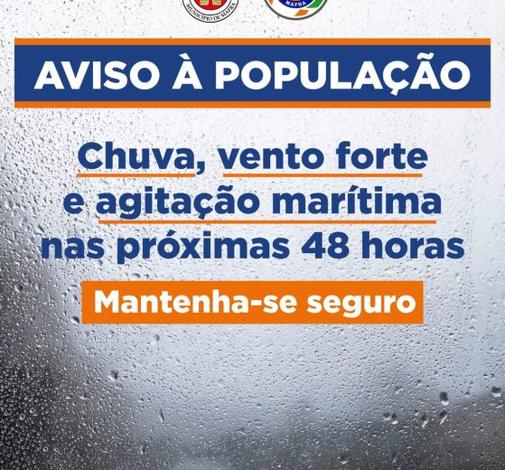 Aviso à População: Chuva intensa, vento forte e agitação marítima nas próximas 48 horas