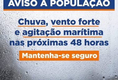 Geral • Meteorologia Aviso à População: Chuva intensa, vento forte e agitação marítima nas próximas 48 horas Adicionar comentário