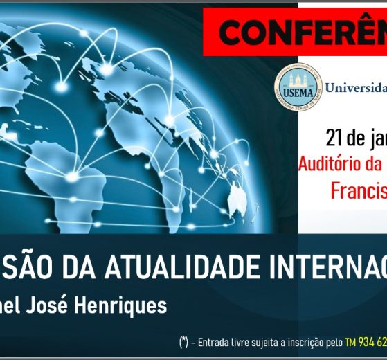 Geral Conferência “Uma Visão da Atualidade Internacional” Adicionar comentário A Universidade Sénior de Mafra (USEMA) organiza no próximo dia 21 de janeiro...