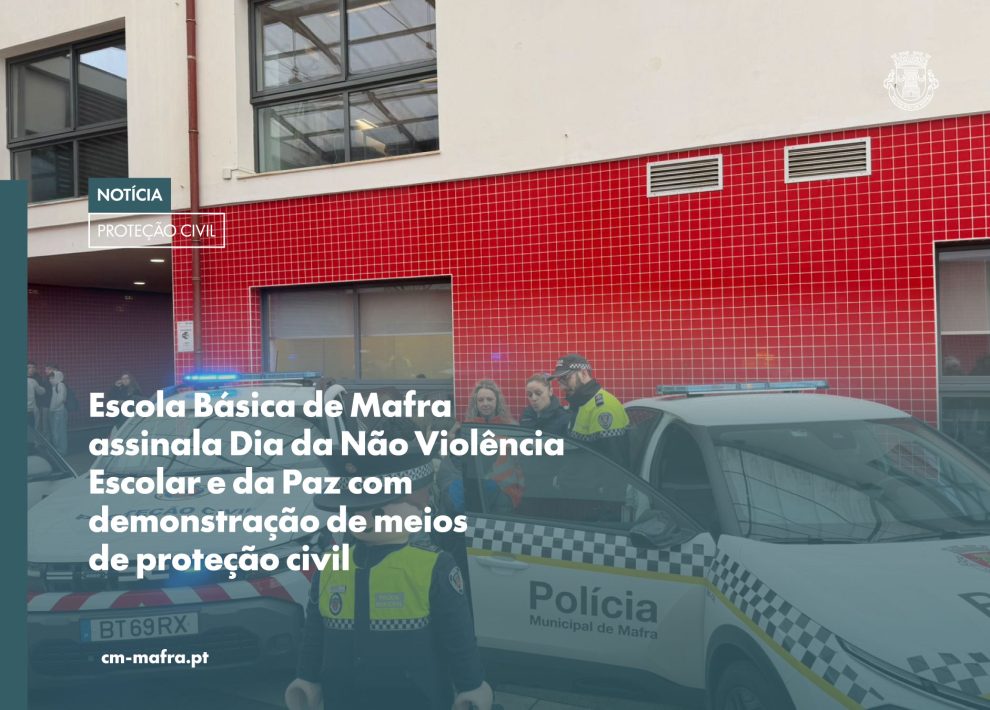 A Guarda Nacional Republicana (GNR), o Serviço Municipal de Proteção Civil e a Polícia Municipal uniram-se numa visita à Escola Básica de Mafra para assinalar o Dia da Não Violência Escolar e da Paz.