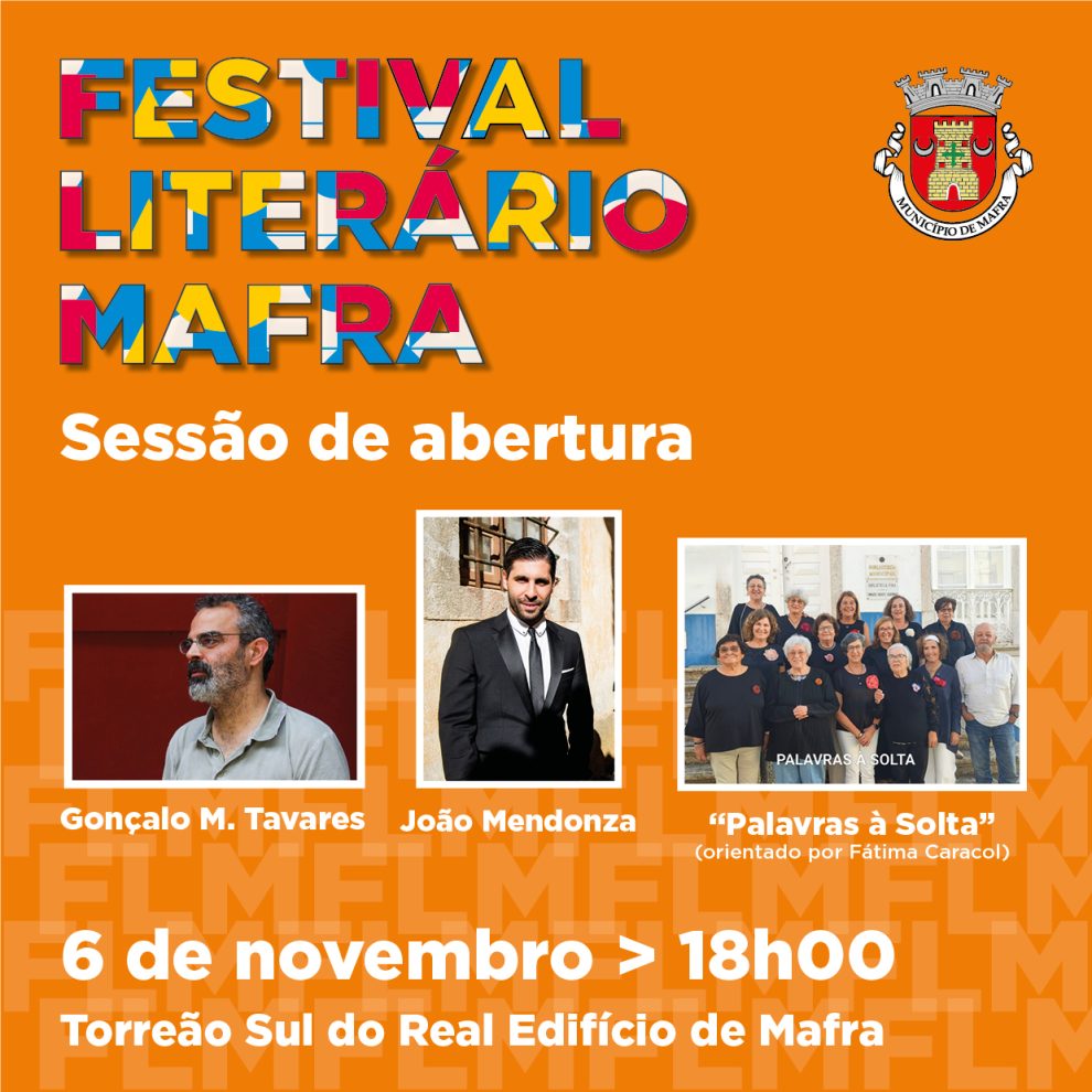 O Festival Literário de Mafra está de regresso a Mafra! A 3.ª edição tem início no dia 6 de novembro, às 18h00, no Torreão Sul do Real Edifício de Mafra. A sessão conta com a presença do autor Gonçalo M. Tavares, seguindo-se um momento musical com João Mendonza.