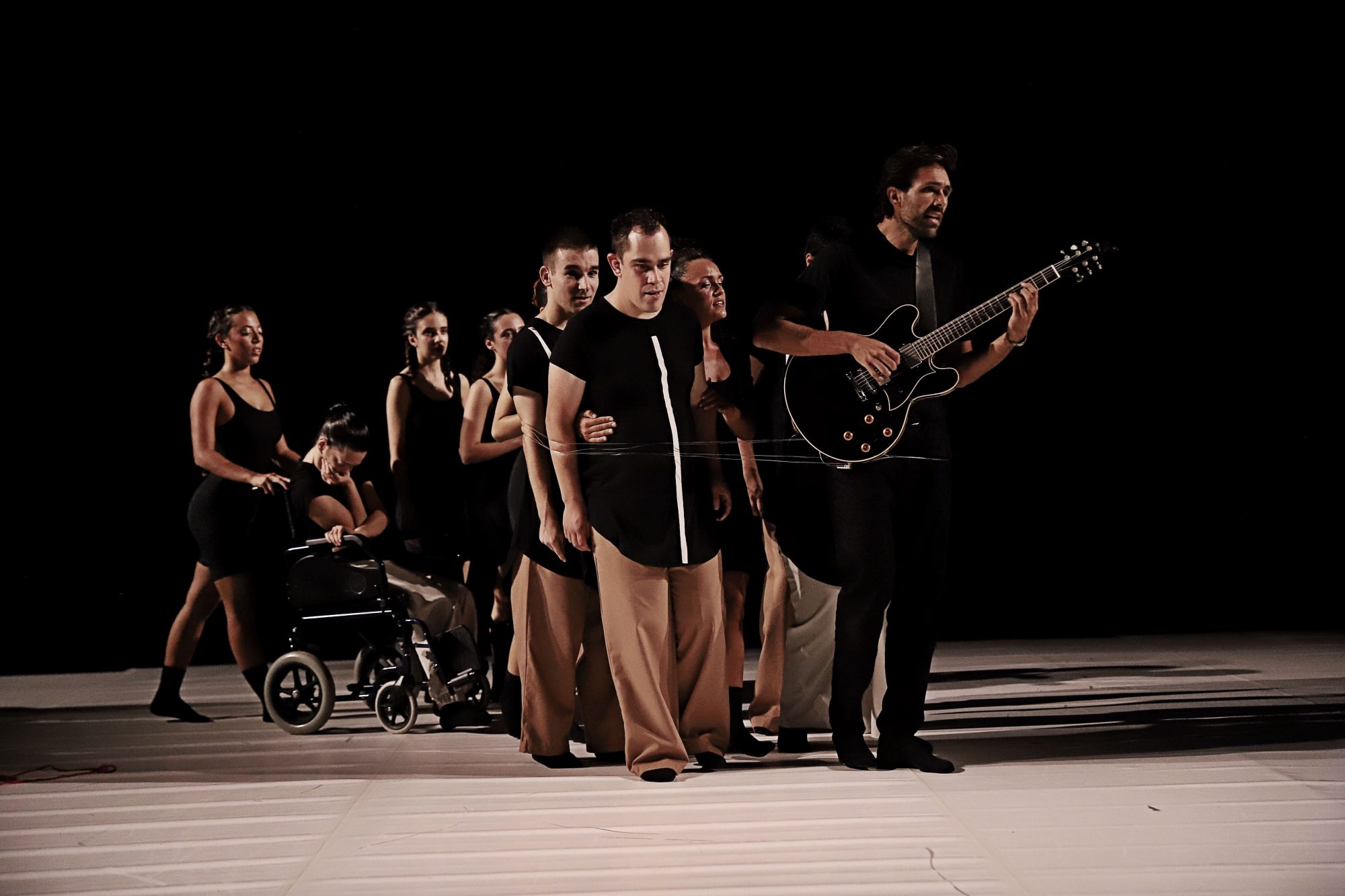 Os artistas surgiam de vários corredores, num fluxo constante de movimento que envolvia todos os sentidos. A música, da autoria de Manuel Rocha, foi o fio invisível que ligou cada momento, ora subtil, ora arrebatadora, mas sempre em perfeita sintonia com a intensidade das interpretações em palco.