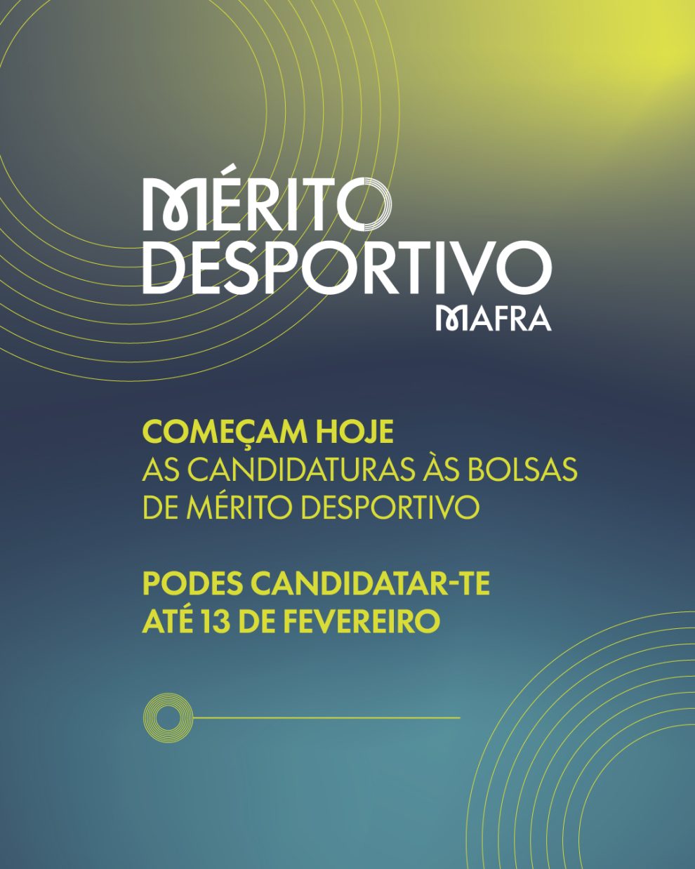 Atenção, jovens atletas do concelho! Até 13 de fevereiro, estão abertas as candidaturas às candidaturas às Bolsas de Mérito Desportivo, um apoio que reconhece o esforço, dedicação e resultados dos nossos jovens desportistas.