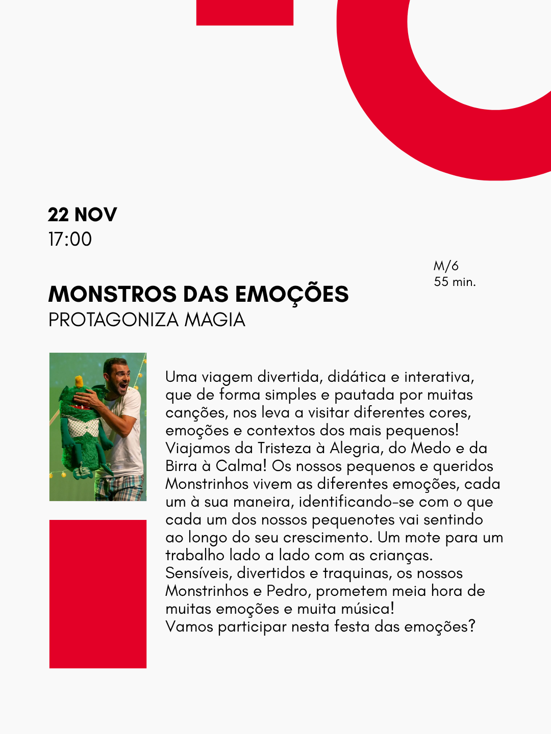 - Prémio: Bilhete para criança para um espetáculo a escolher do PALCO’S – Festival de teatro infantojuvenil.