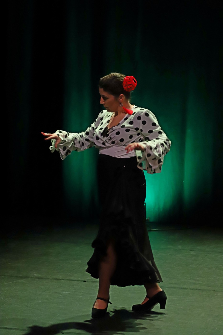 Sob a orientação da professora Vera Battaglia, o grupo apresentou um alinhamento marcado pela energia, coordenação e expressividade, revelando o trabalho consistente desenvolvido ao longo da época. Entre saias rodadas, sapateado firme e braços desenhando o ar com elegância, o palco transformou-se num espaço de festa, mas também de rigor artístico.