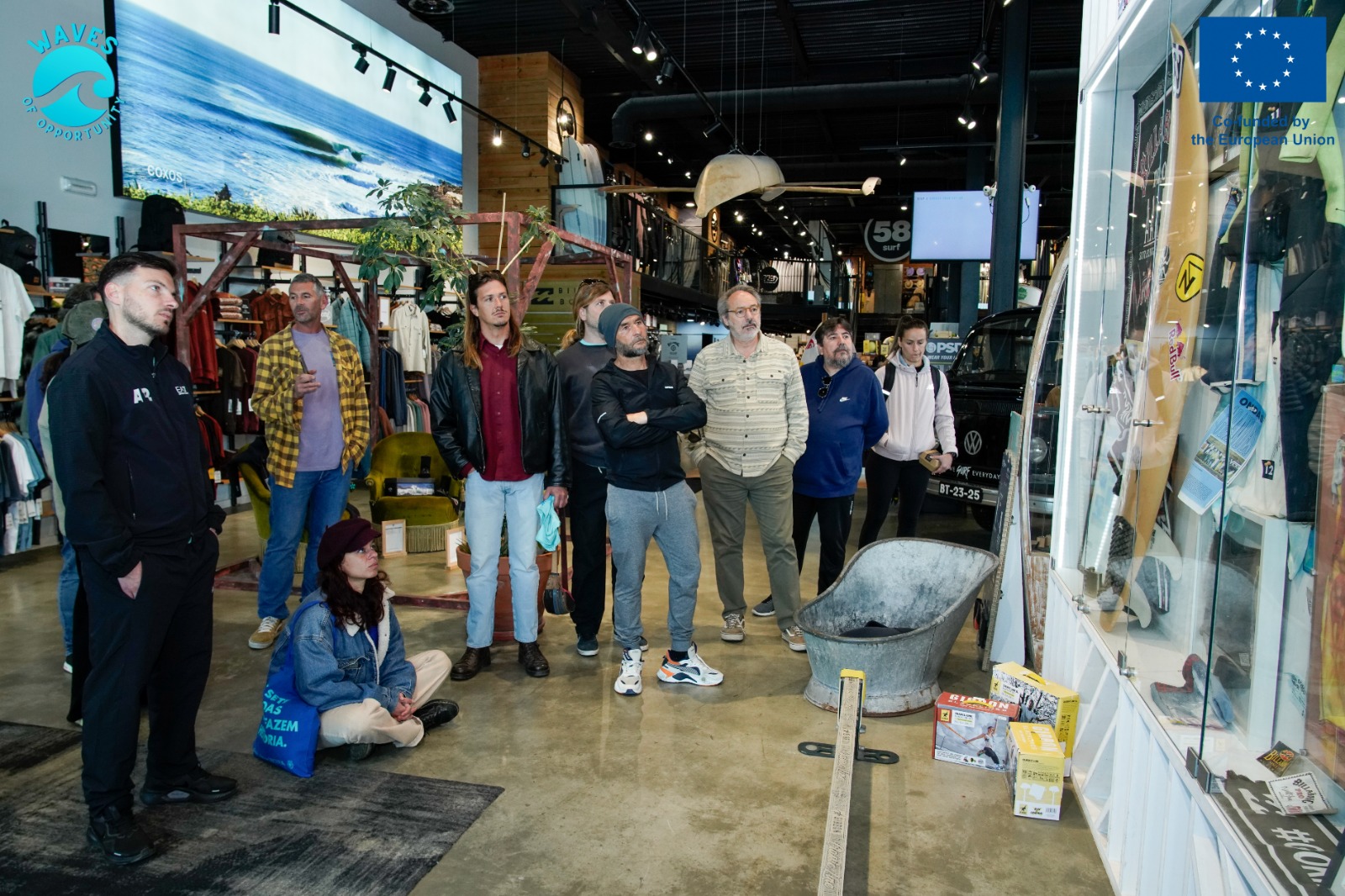 Ao mesmo tempo, acreditamos que a economia do surf pode ajudar a responder a um dos grandes desafios sociais da Europa: os jovens que se encontram fora dos sistemas de educação, formação e do mercado de trabalho. O ecossistema empreendedor da Reserva Mundial de Surf da Ericeira oferece condições únicas para funcionar como um laboratório vivo onde, com o contributo das nossas marcas, empresas, comunidade desportiva local e do Município de Mafra, podemos identificar competências críticas e criar novas oportunidades de formação, estágios e emprego para estes jovens.” Luca Amadessi da AL2Sport, e coordenador do projeto, sublinha que: Durante o encontro, os parceiros tiveram ainda oportunidade de conhecer o ecossistema empreendedor do surf da Ericeira, incluindo visitas à Ericeira Business Factory, Despomar / 58 Surf Shop e à fábrica de pranchas Semente Surfboards, bem como atividades na Reserva Mundial de Surf da Ericeira, entre elas uma caminhada interpretativa e uma experiência de surf na icónica praia de Ribeira d’Ilhas.